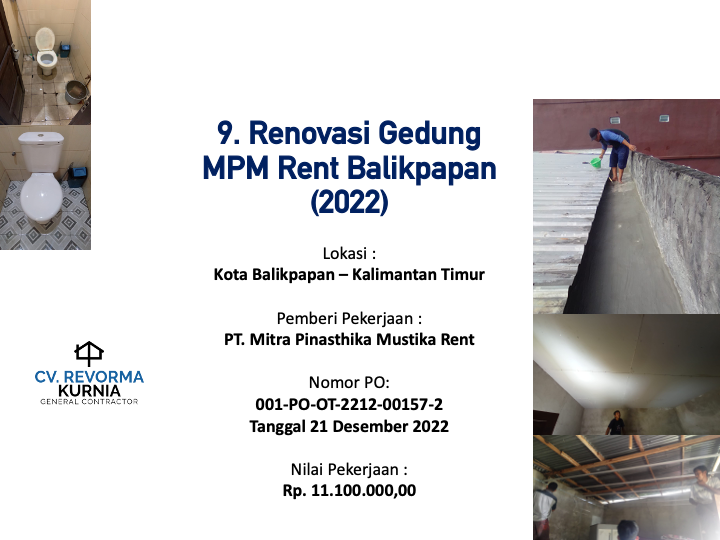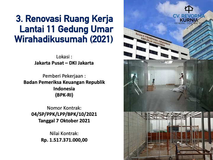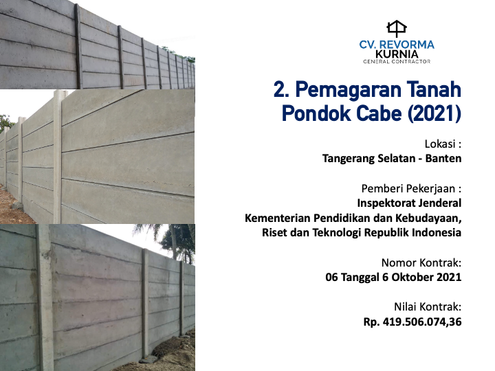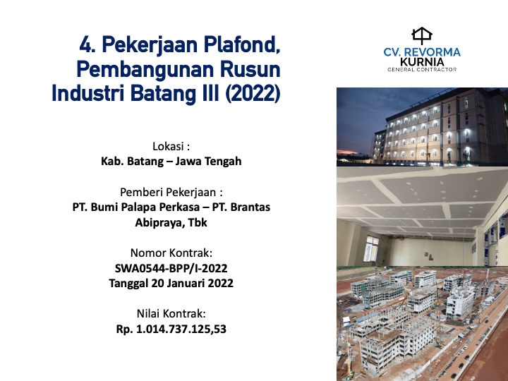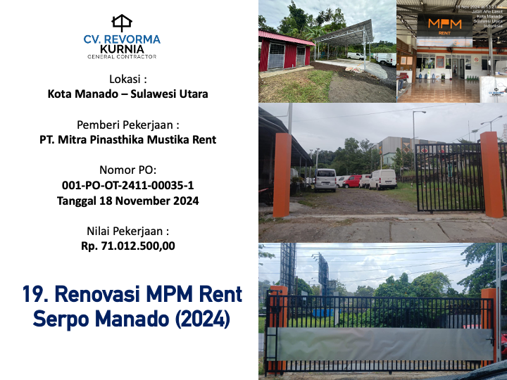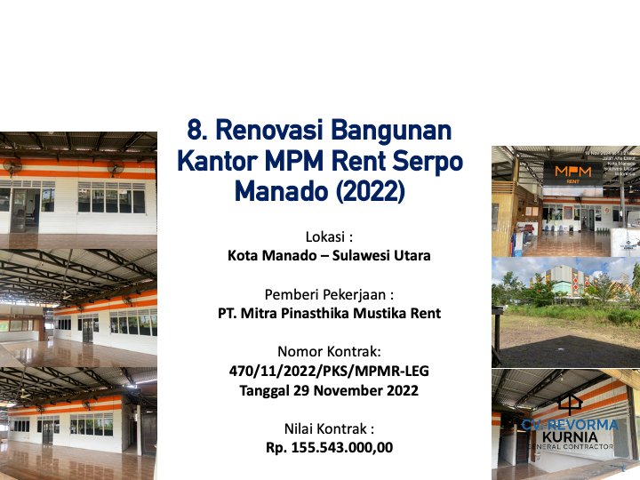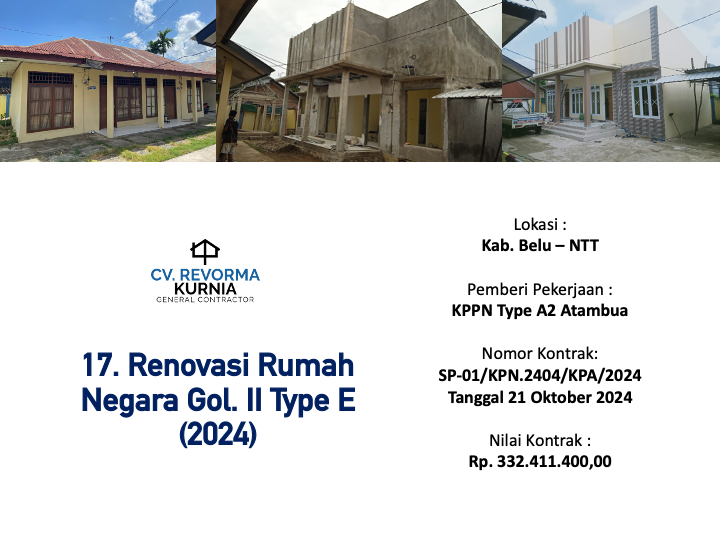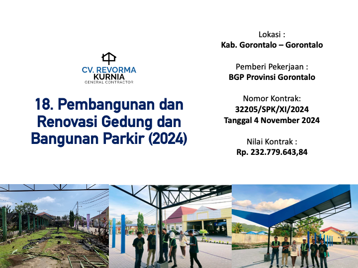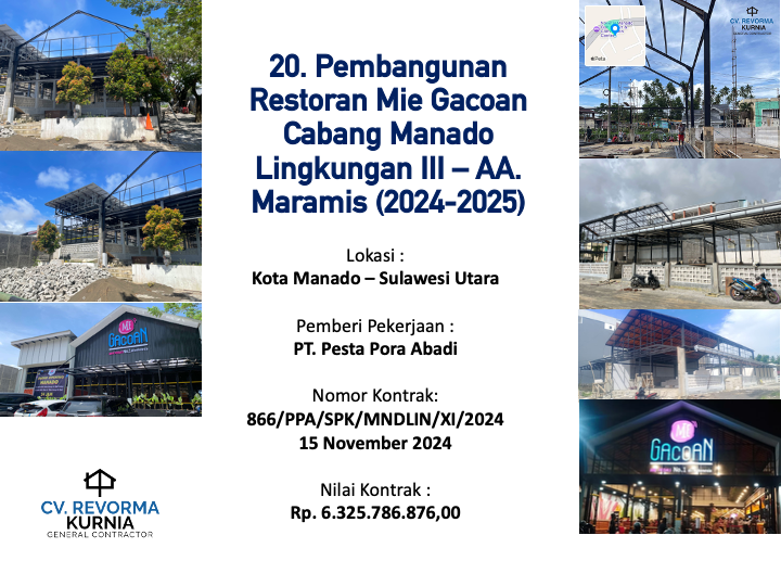 Melaksanakan Proyek pertamanya di Tahun 2020, dan hingga kini telah memiliki berbagai pengalaman pekerjaan konstruksi di berbagai Wilayah di Indonesia, seperti di Kota Manado, DKI Jakarta, Kabupaten Batang, Kabupaten Jember, Kota Ambon, Kota Banda Aceh, Kota Balikpapan, Maluku Tengah, Maluku Tenggara, Kota Kupang, Kab. Belu, Kab. Gorontalo dan Kota Samarinda.